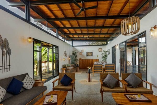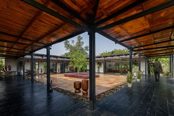 It comprises four clusters of two-bedroom units and two single-room units, spread out over an 8-acre estate. Each unit is perched on an elevated private deck overlooking the forest.