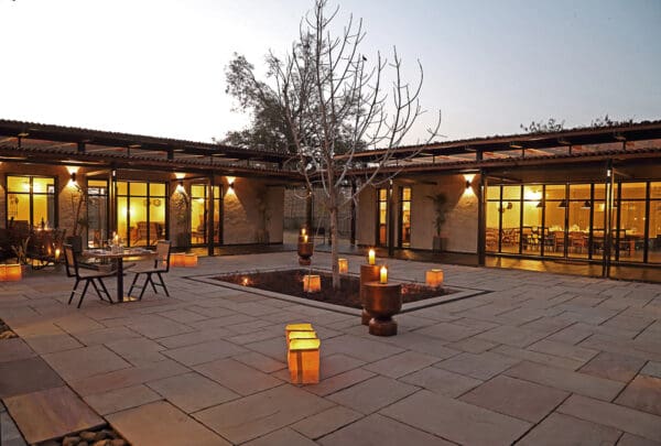 The lodge’s restaurant is embedded in the central courtyard, boasting beautiful indoor and outdoor dining spaces. A set menu is served for breakfast, lunch and dinner, all with a focus on high quality artisanal and gourmet delicacies.