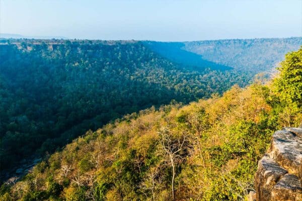 Panna National Park lies in the Vindhyachal Mountain Range that runs west to east of central India. It’s also referred to as the Emerald Forest because of its active diamond reserves, but the wildlife, dramatic landscapes and natural beauty of the Park are as precious as the diamonds found underground.