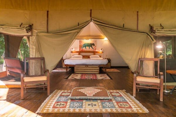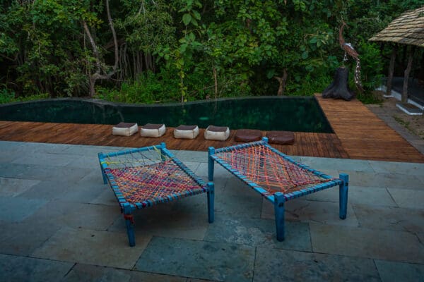 Located in the heart of the Pench Tiger Reserve, Jamtara Wilderness Camp is an exclusive 10-room luxury tented camp. Each luxury tent is strategically positioned to overlook the riverbank and the lush forest of the Tiger Reserve in the background.