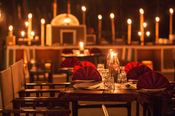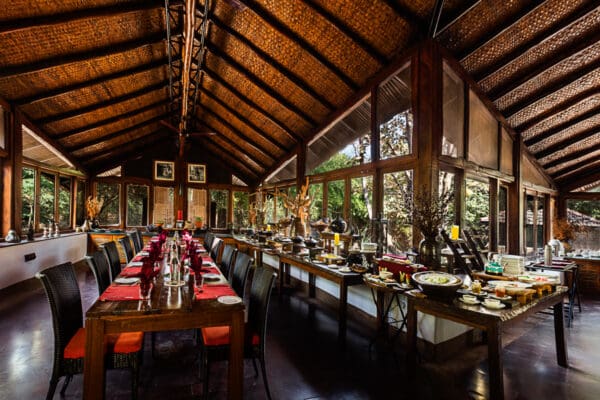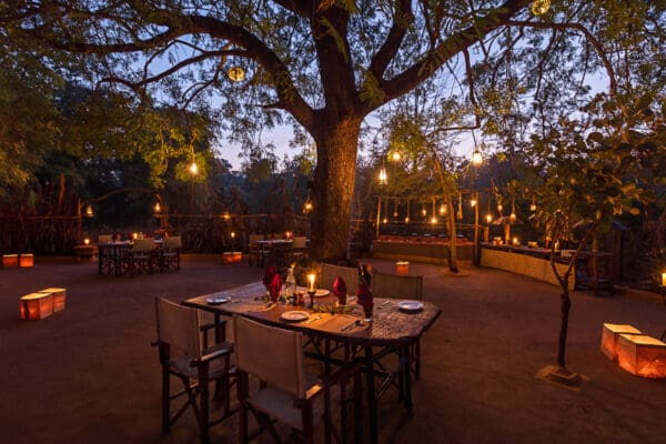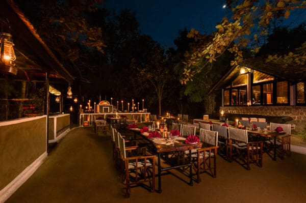The Golghar houses a seating lounge, indoor dining and bar. This is where breakfast and lunch are traditionally served. There are multiple outdoor dinner locations, depending on the time of the year, dinner is served around a campfire each evening in a different location within the property.