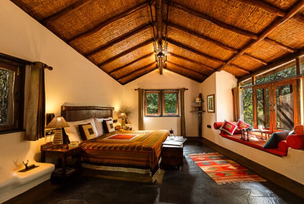 Reni Pani Jungle Lodge is inspired by classic wildlife architecture and built using indigenous local materials. There are 12 cottages and 4 luxury tents spaciously dotted around the property to allow for privacy. All the cottage and tent rooms are air-conditioned, comfortably furnished and boast their own private deck.